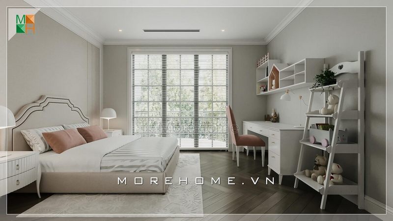 Những bố trí nội thất vuông vắn, không cầu kì rườm rà mà mang vẻ đẹp tiện nghi của phong cách hiện đại thật cuốn hút trong không gian phòng ngủ biệt thự, nhà phố